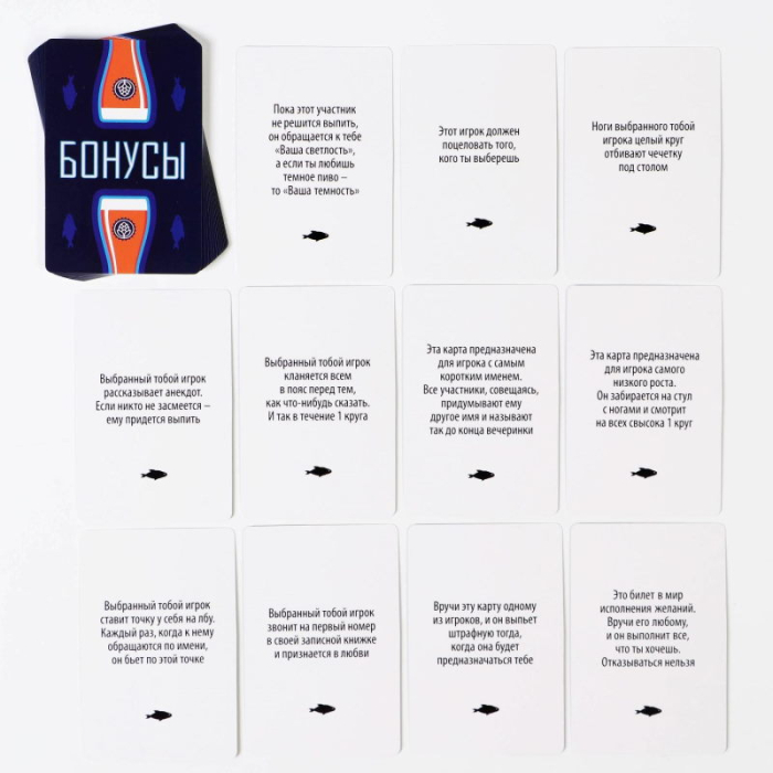 Всё верно! Перед вами игра, которая сделает любую шумную вечеринку ещё веселее! Вытягивайте карточки и получайте бонусы!