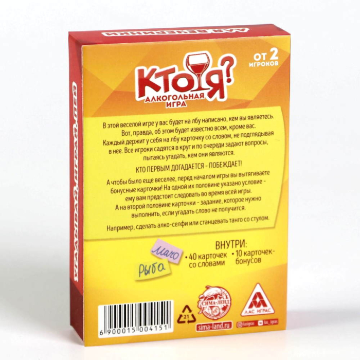 Каждый помещает себе на лоб карточку, не подглядывая в неё. Все игроки садятся в круг и по очереди задают по 3 уточняющих вопроса, пытаясь угадать, кем являются. Кто первым узнает это, тот побеждает. Вот и все правила! Объяснить их можно меньше чем за минуту, а играть хоть целый вечер, ведь это очень весело и интересно.