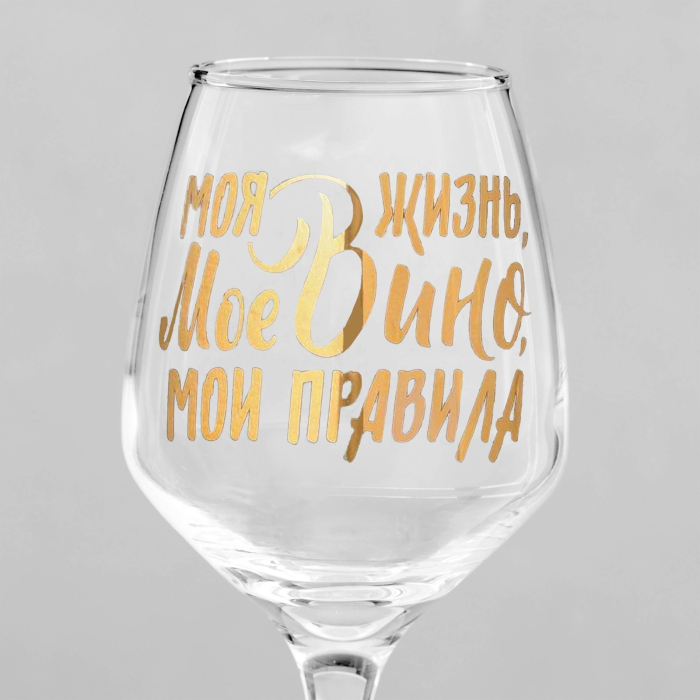 Бокал для вина «Мое вино - мои правила» — это идеальный аксессуар для истинных ценителей вина, которые знают толк в хороших моментах. Объемом 350 мл, он прекрасно подходит как для повседневного употребления, так и для особых случаев.