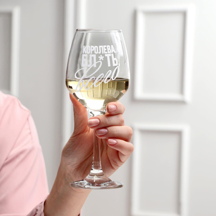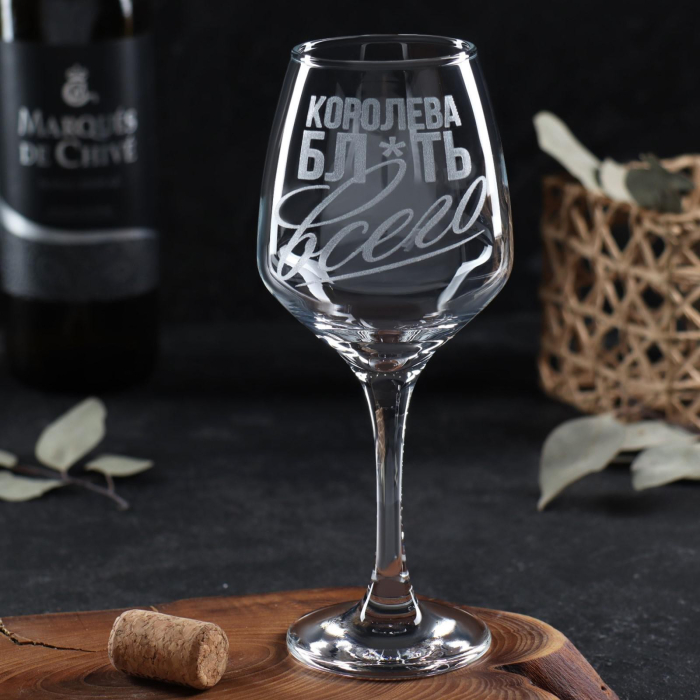 ---Бокал для вина с надписью "Королева всего" гравировка, 350 мл