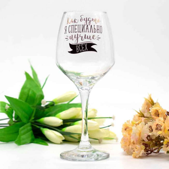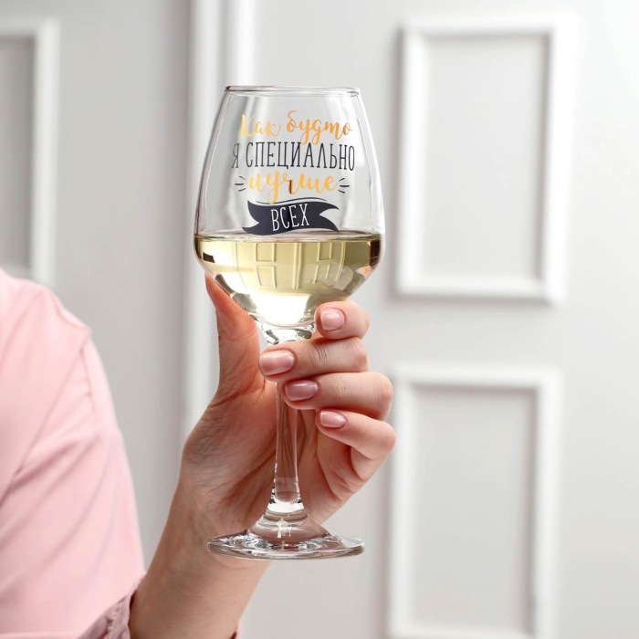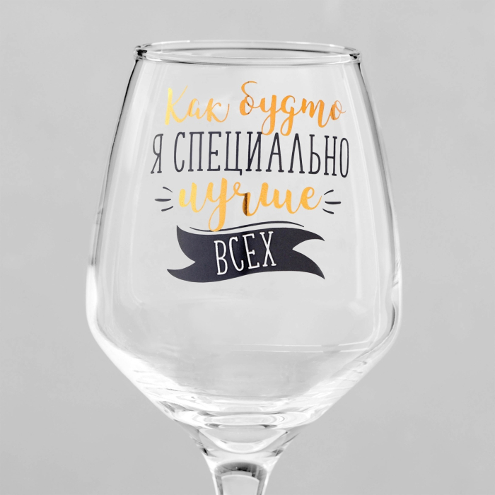 Представляем вам уникальный бокал с игривой надписью "Как будто я специально лучше всех"! Этот стильный аксессуар станет замечательным дополнением к вашим вечеринкам и уютным вечерним встречам. Сделанный из качественного стекла, он не только прекрасно выглядит, но и удобно лежит в руке. Идеален для различных напитков — от освежающих коктейлей до классического вина. Поднимите настроение себе и своим друзьям, наслаждаясь любимыми напитками в бокале, который точно выделит вас среди остальных!