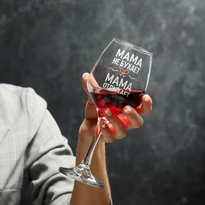 Этот элегантный бокал идеально подходит для того, чтобы насладиться любимым напитком. С гравировкой "Мама отдыхает" он станет прекрасным напоминанием о важности отдыха и заботы о себе.