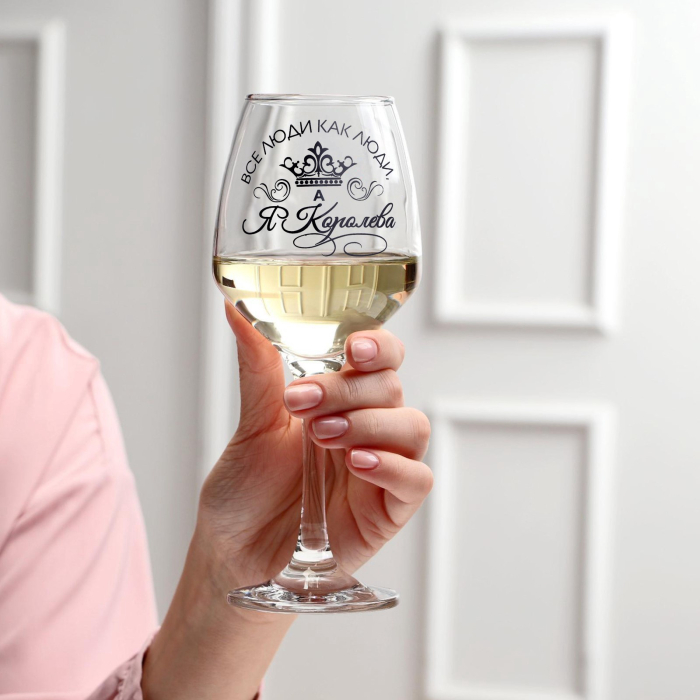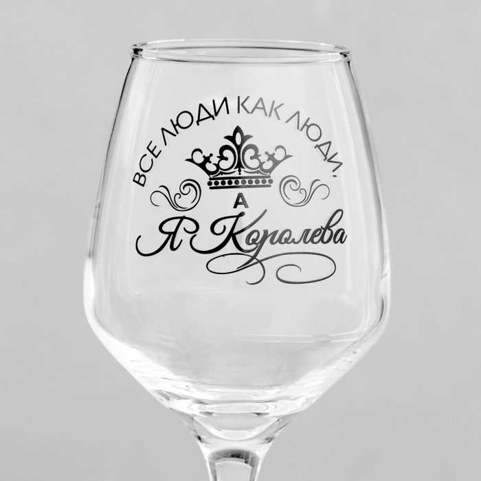 Бокал для вина с надписью "Все люди как люди, а я королева!"