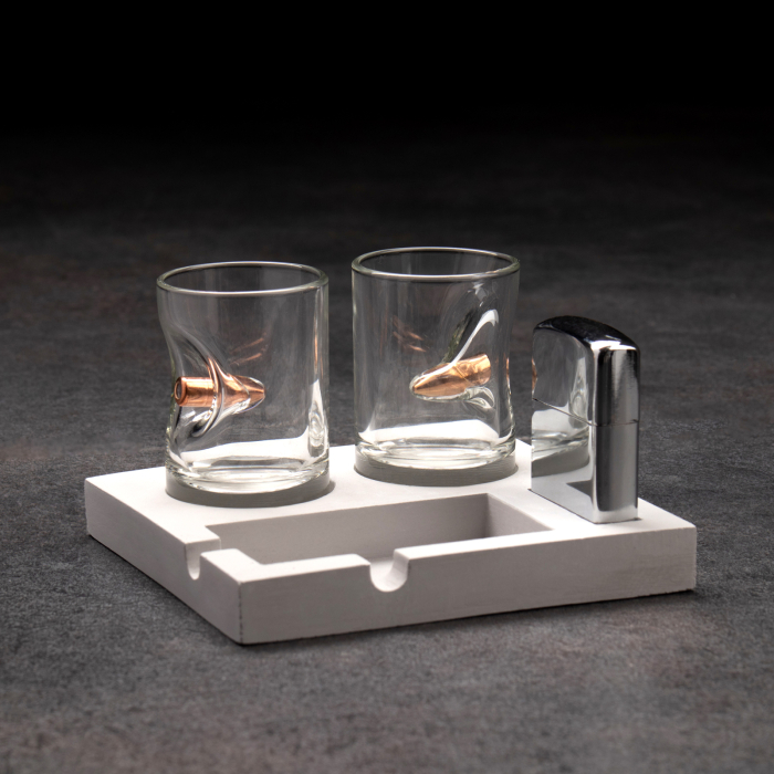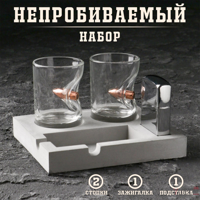 Набор «Непробиваемый» – это не просто посуда, а настоящий стильный акцент для вашей кухни или бара. В набор входят две стопки объемом 50 мл, выполненные в форме пули, которые эффектно подчеркнут ваш вкус и добавят изюминку к любому застолью. Комплект дополнен зажигалкой в том же брутальном дизайне и удобной подставкой, которая обеспечит порядок и станет стильным элементом декора.