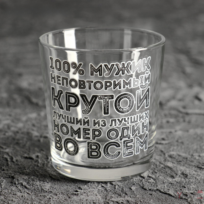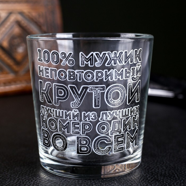 Стакан для виски "100% мужик" — это идеальный аксессуар для настоящего ценителя крепких напитков. С объемом 250 мл он прекрасно подходит для подачи виски, рома или коктейлей, создавая атмосферу мужской солидности и стиля.