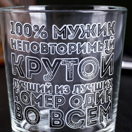 Несмотря на его простую форму, стакан "100% мужик" станет акцентом на любом столе, создавая атмосферу праздника и объединяя друзей.