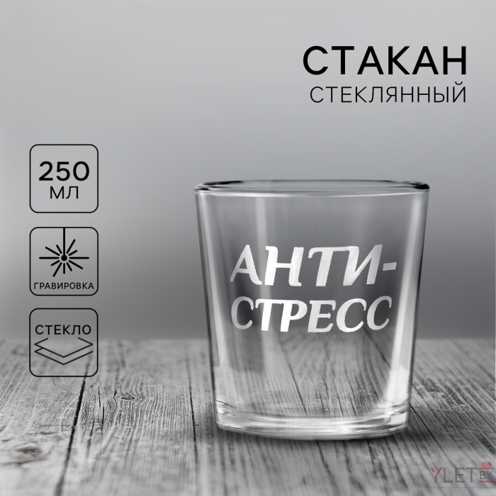 Стакан стеклянный для виски «Анти-стресс» объемом 250 мл — это не просто сосуд для любимого напитка, а настоящий аксессуар, который добавит элегантности и стиля в вашу коллекцию посуды.