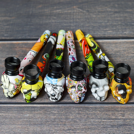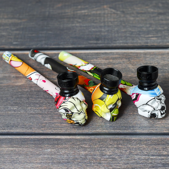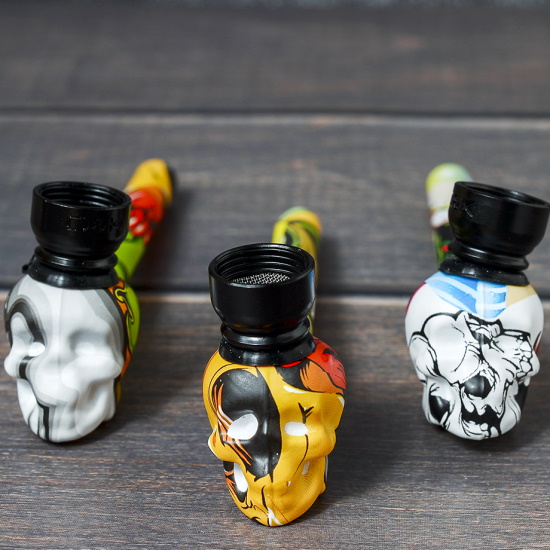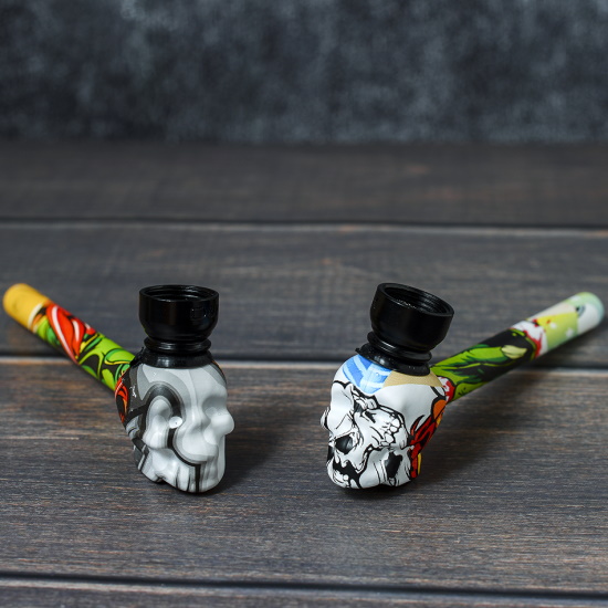 Курительный девайс стеклянный Череп с росписью