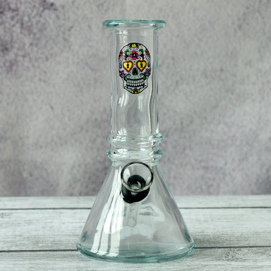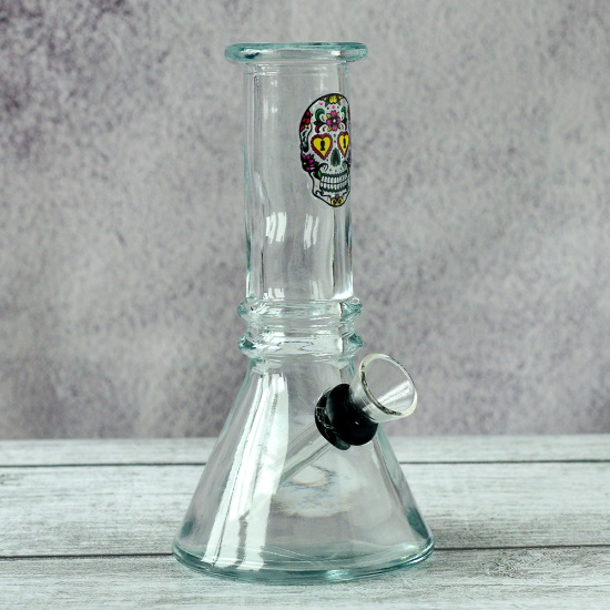 Бонг стеклянный 15 см прозрачный с черепом Трапеция