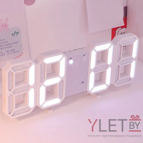 Часы будильник электронные Цифры, белые, с термометром