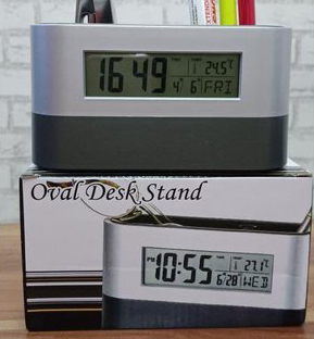 Подставка для канцтоваров двойная с часами, календарем и термометром