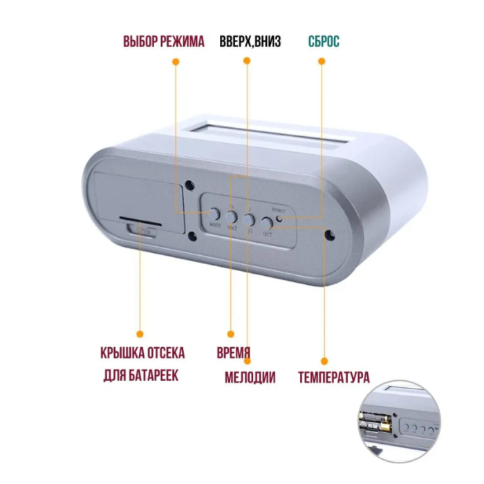 - Термометр: Удобный контроль температуры в помещении (с возможностью выбора Цельсия или Фаренгейта).