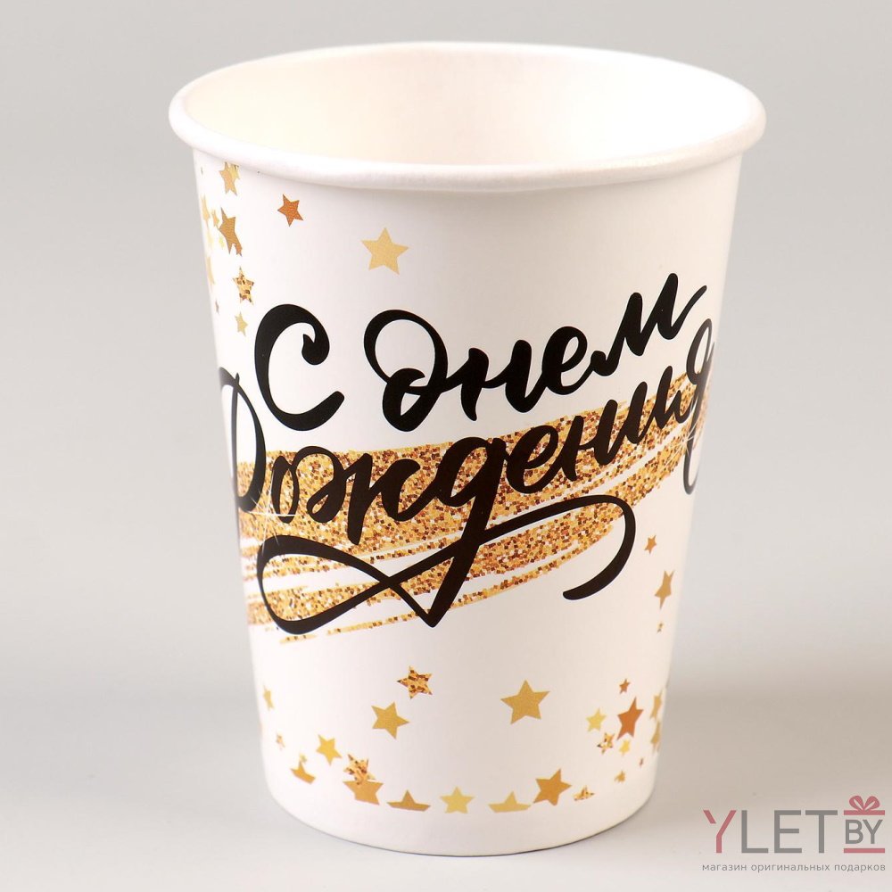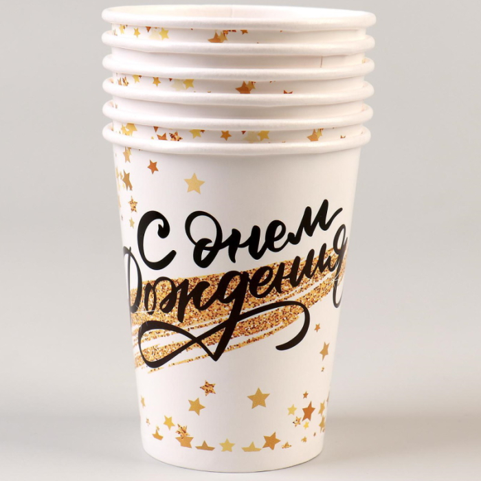 Стакан бумажный С Днём рождения. Золотой звездопад, набор 6 шт., 200 мл