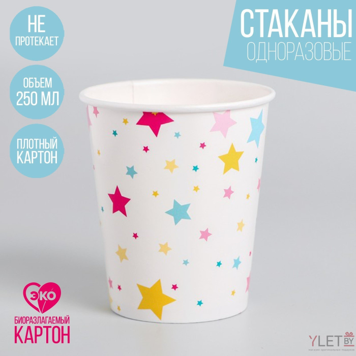 Стакан бумажный Звёзды, набор 10 шт, 250 мл