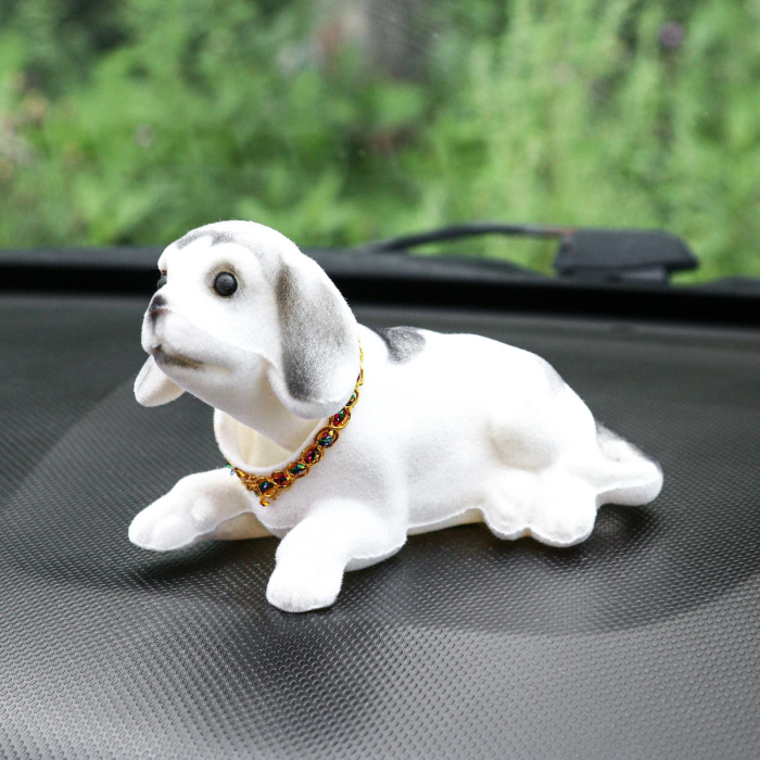 Собака на панель авто, качающая головой, белый окрас, 16 х 13 х 8,5