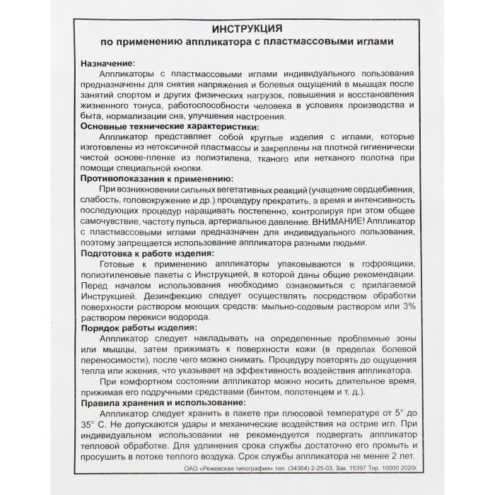 Ипликатор (Аппликатор) игольчатый может быть использован для: ускоренного восстановления работоспособности человека в условиях производства, быту, спорте.