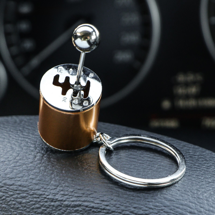 Созданный в виде рычага коробки передач, этот брелок выполнен из качественного металла с элегантным золотистым покрытием, что придает ему роскошный и современный вид. Он не только прекрасно подчеркнет вашу индивидуальность, но и поможет легко найти нужную связку ключей среди множества других.