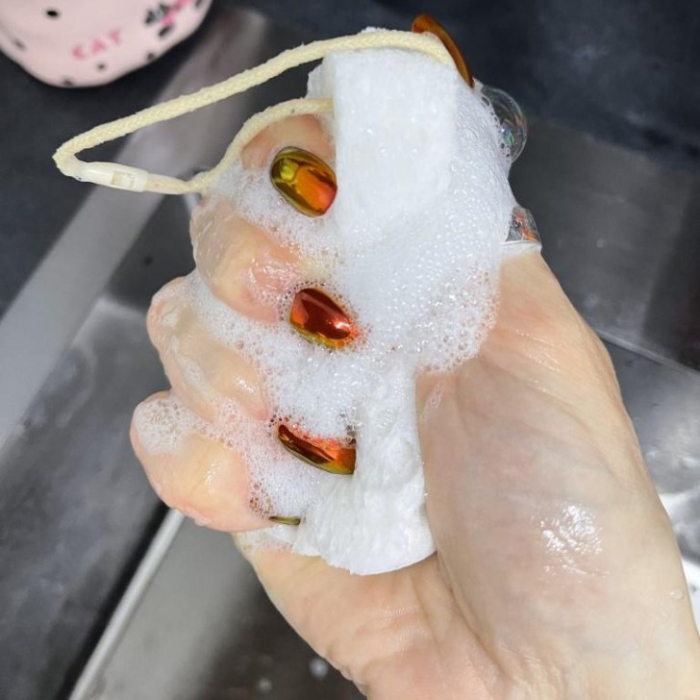 - Увеличение в размерах: при первом намокании губка увеличивается и сохраняет свою форму, что делает её удобной в использовании.