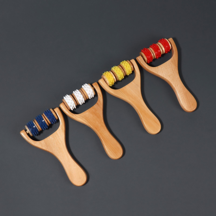 ---Массажёр - роллер с шипами, универсальный, деревянный, 14.5×8×2 см, МИКС