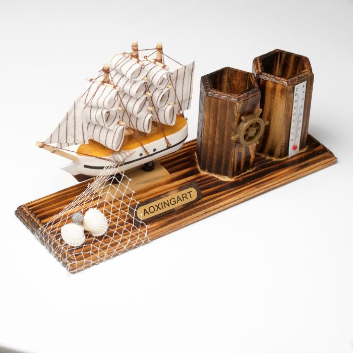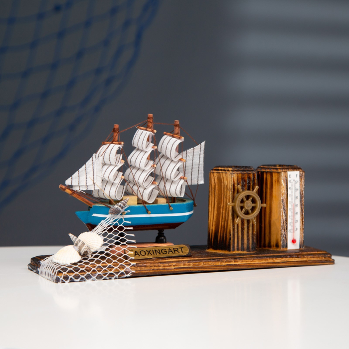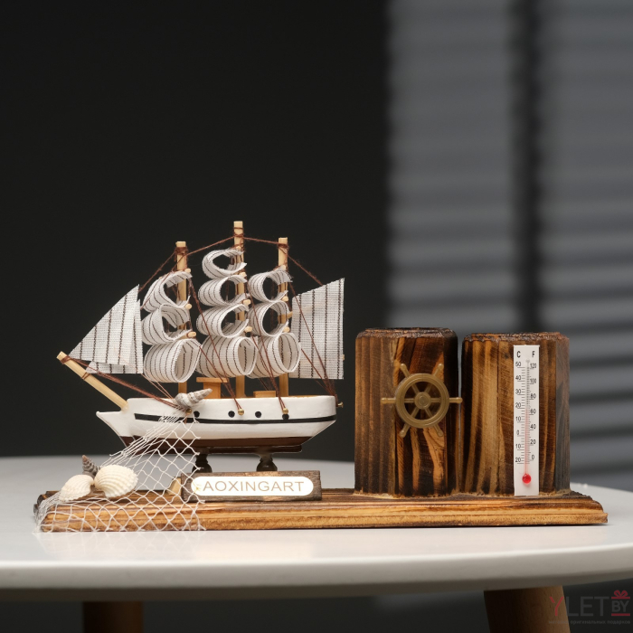 Набор настольный "Корабль" с двумя карандашницами и термометром — это стильный и функциональный аксессуар, который прекрасно подойдет для вашего рабочего места или дома. С оригинальным дизайном, выполненным в морском стиле, он добавит уют и индивидуальность в любой интерьер. Набор не только украшает стол, но и обеспечивает практичность, позволяя организовать пространство и поддерживать порядок.