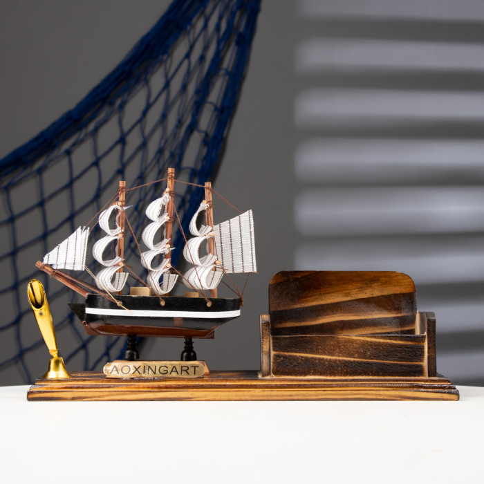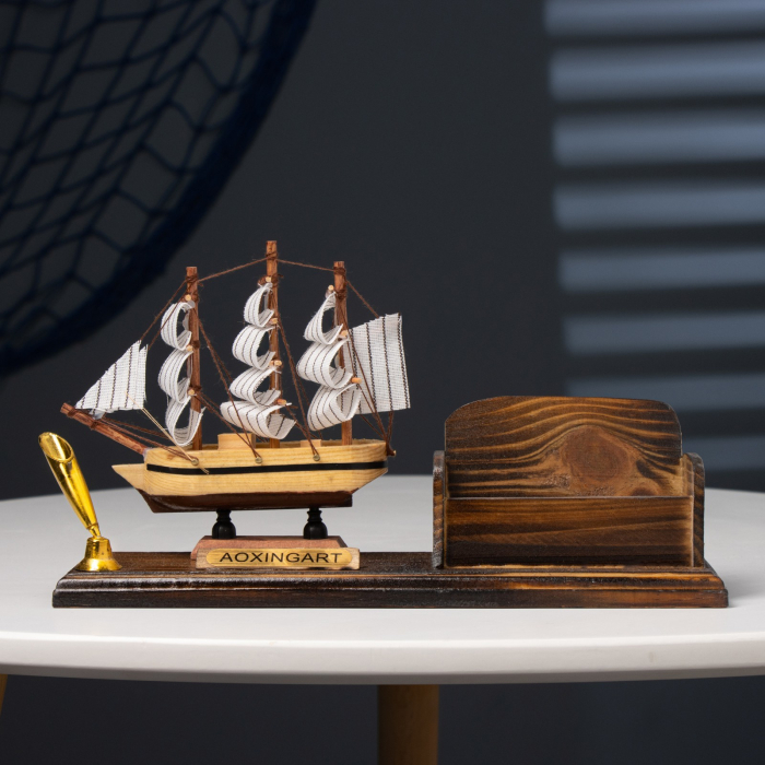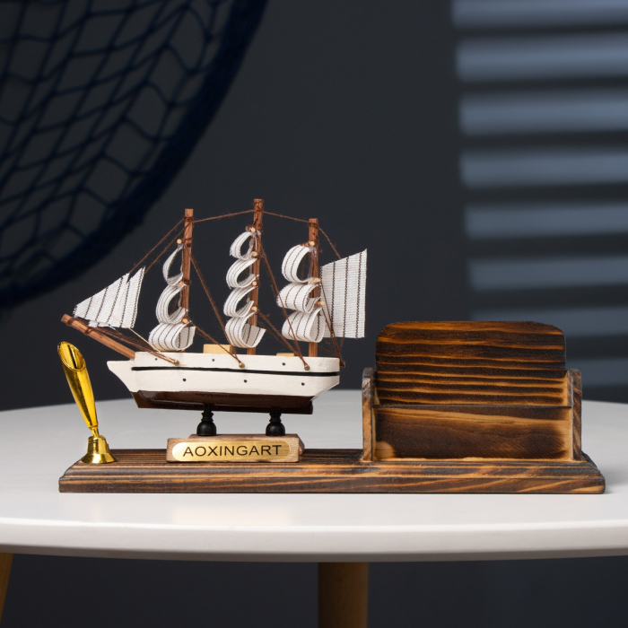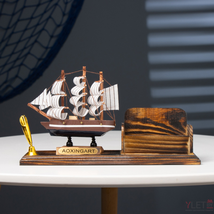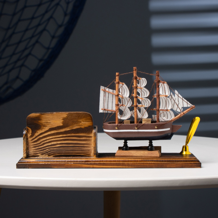 Органайзер настольный: визитница, подставка под ручку, сувенирная модель корабля, 15×25 см