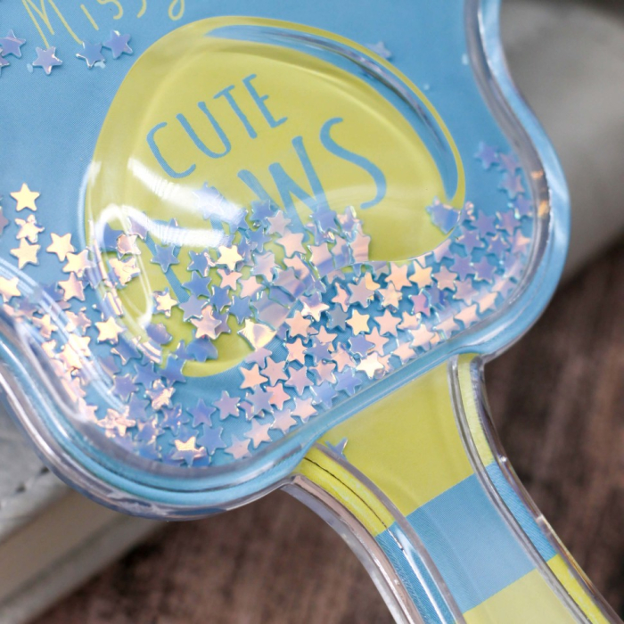 - Забавные пайетки: Внутри корпуса расположены яркие встряхиваемые блестящие пайетки, которые придают ощущение свежести и радости при каждом использовании. Теперь процесс расчесывания станет настоящим удовольствием!