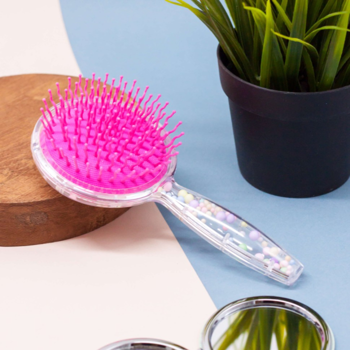 - Весёлые элементы: В корпусе расчёски находятся забавные встряхиваемые пенопластовые шарики, которые добавляют элемент веселья и создают чувство свежести и счастья при каждом расчесывании.