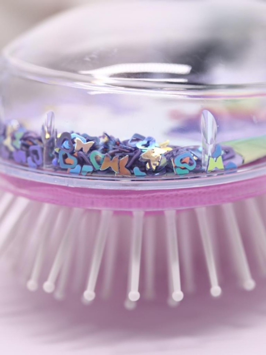 - Весёлые элементы: Забавные встряхиваемые пайетки и пенопластовые шарики внутри корпуса добавляют настроения и делают каждое использование расчёски особенным. Каждый раз, когда вы берёте её в руки, вы получаете заряд позитива!