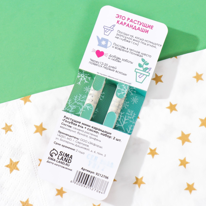 Каждый набор содержит два волшебных карандаша: один с семенами гордой голубой ели, другой – с семенами стойкой сосны. Сначала – шедевр на бумаге, потом – шедевр природы на вашем подоконнике!