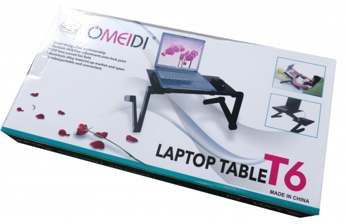 Столик изготовлен из высококачественного алюминия, что делает его одновременно лёгким и прочным. Он подходит для ноутбуков любых моделей! Регулируемые ножки со способностью вращения на 360 градусов позволяют установить столик в идеальное для вас положение, а каждое из трёх "колен" высотой 25 см предоставляет возможность тонкой настройки высоты и наклона поверхности.
