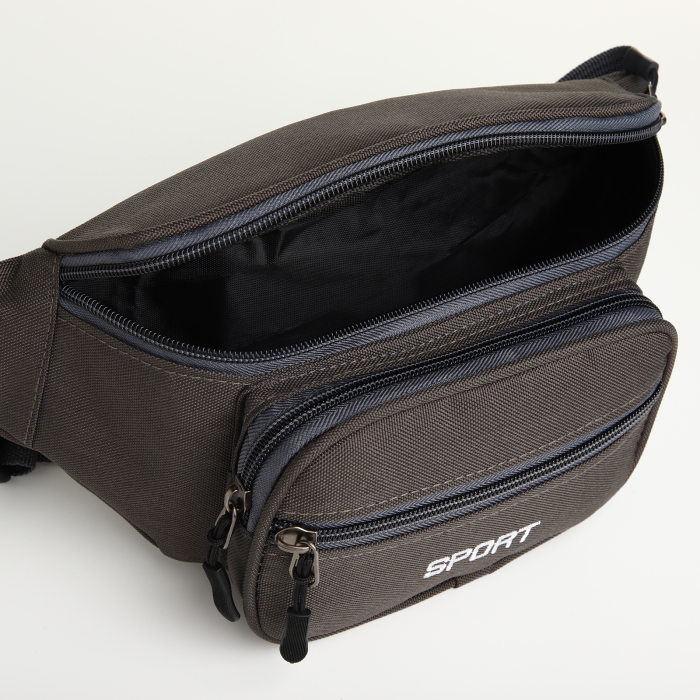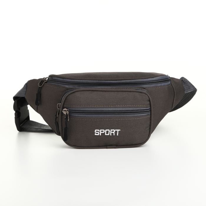 Сумка поясная "Грейс" на молнии, 30*10*14 см, 2 наружных кармана, серый