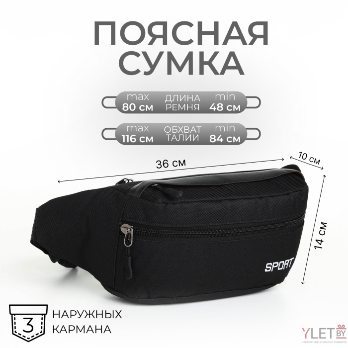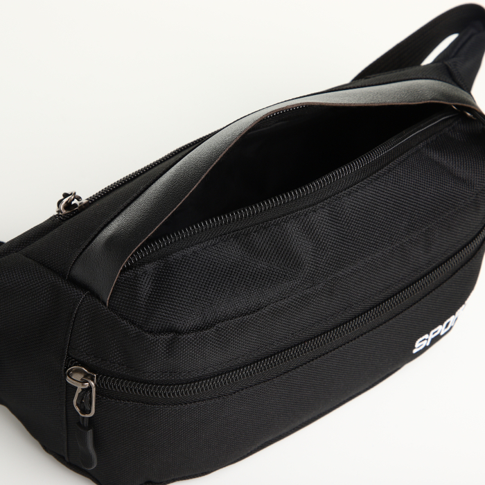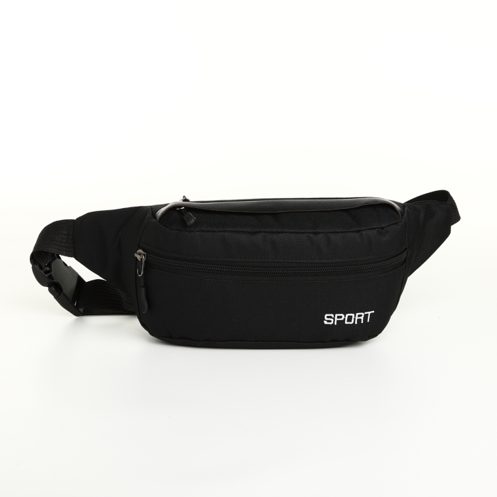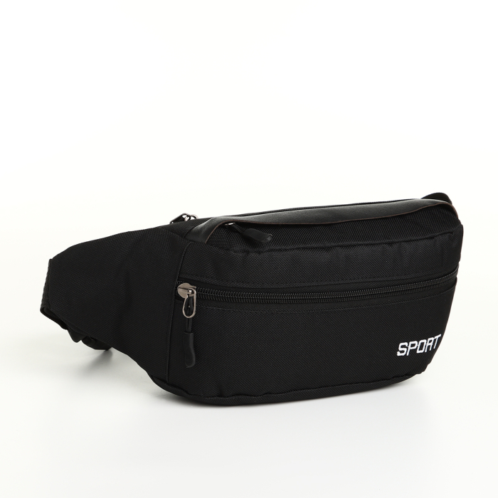 Сумка поясная "Прайм" на молнии, 36*10*14 см, 2 наружных кармана, чёрный