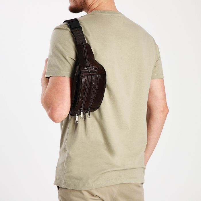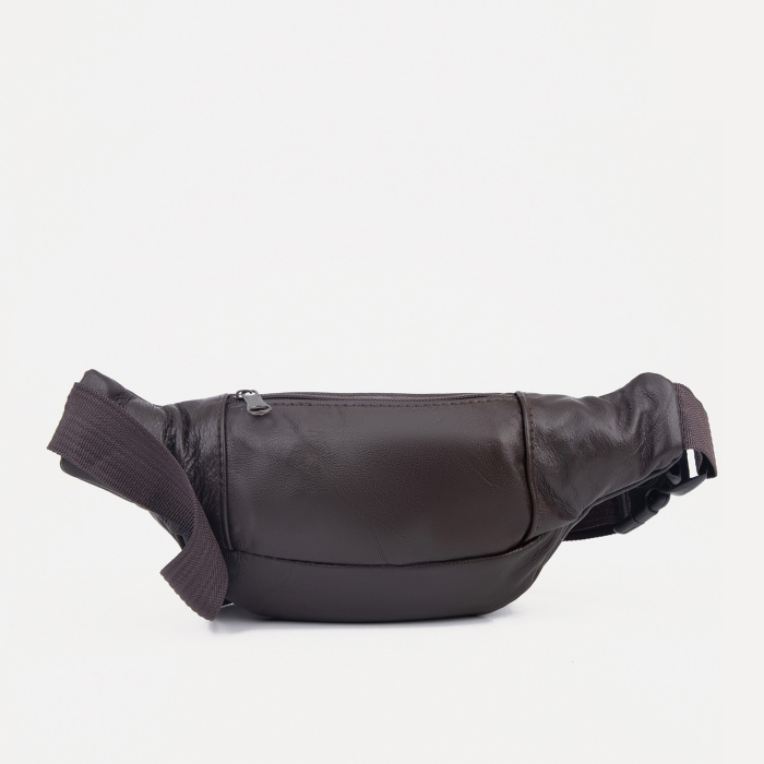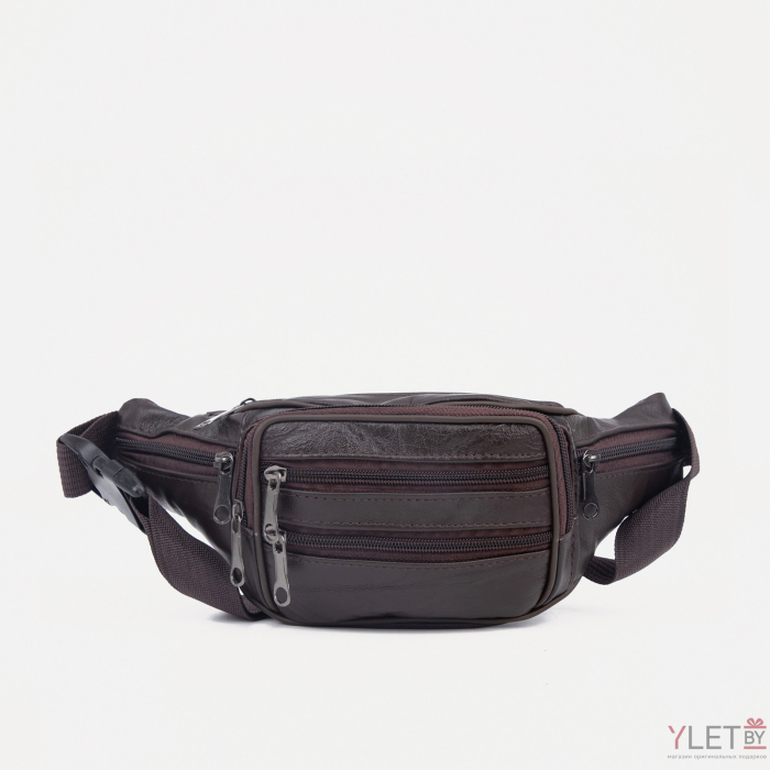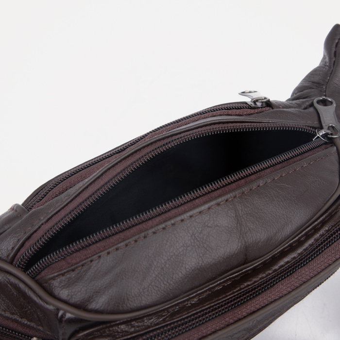 Сумка поясная "Престиж" на молнии, 22*6*12 см, 5 наружных карманов, коричневый
