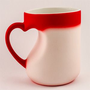 Кружка-хамелеон с ручкой в виде сердечка меняет свой цвет в зависимости от температуры напитка. Налив в кружку горячую воду, вы сможете наблюдать, как тон её постепенно светлеет, превращаясь в белый. Подарок-сюрприз символизирует то, как любовь волшебно преображает окружающий нас мир.