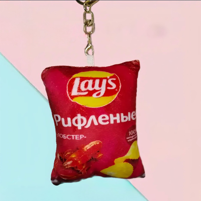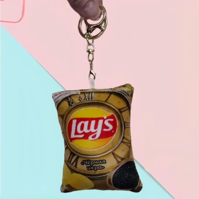 - Уникальный дизайн: Брелок стилизован под классическую пачку чипсов Lay's, что не только вызывает улыбку, но и придаёт вашему ключу или рюкзаку неповторимый стиль. Яркие цвета добавляют настроение и визуальную привлекательность.