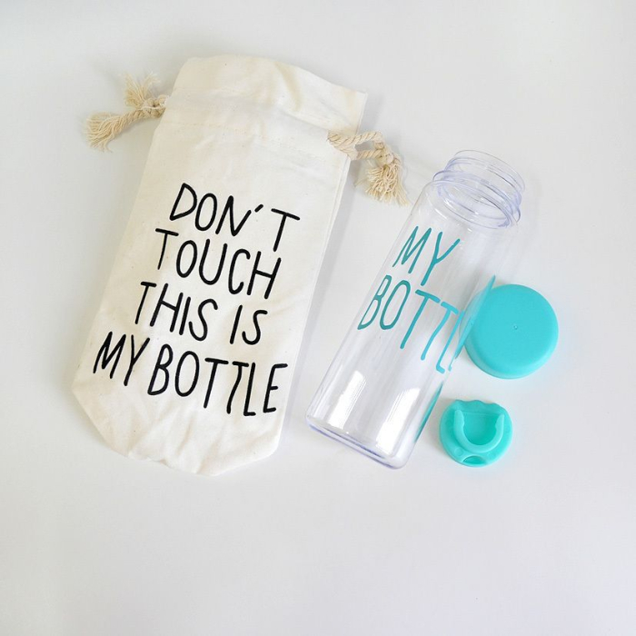 "My bottle" - персональная бутылка для воды с льняным мешочком в комплекте, на котором написано "Don't touch this is my bottle"!