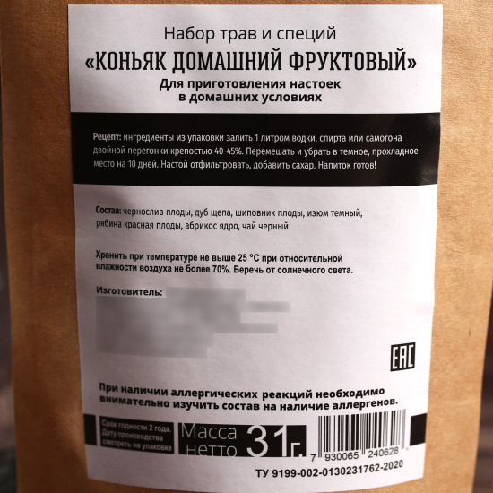 ---Набор для приготовления алкоголя «Коньяк фруктовый»: набор трав и специй 31 г., штоф 500 мл., инструкция