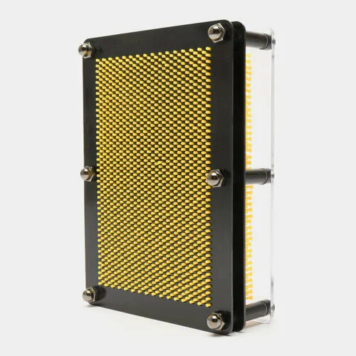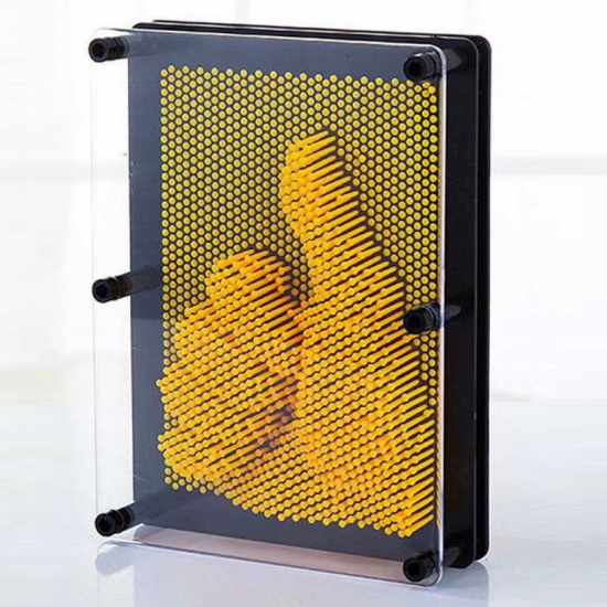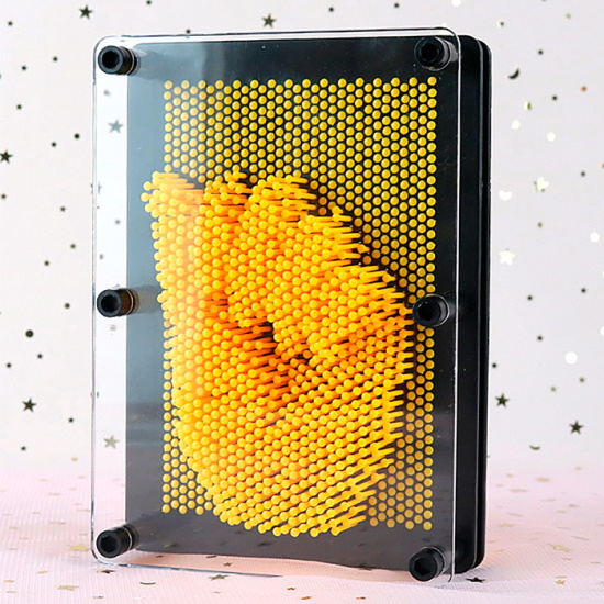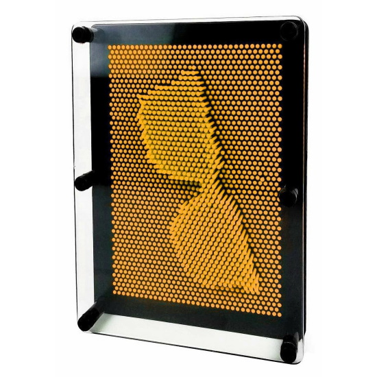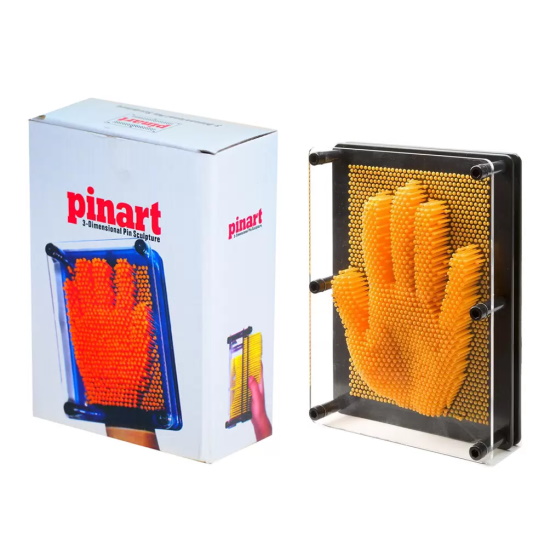 С помощью этого набора для создания пин-арт фигур вы легко можете создавать скульптуры в формате 3D в считанные секунды. Принцип работы довольно прост - в пластиковой панели располагаются множество маленьких пластиковых стержней. Вам достаточно приложить что-нибудь (руку, лицо, телефон) в панели и перевернуть ее - тут же на обратной стороне отразится ваша 3d-скульптура. После этого ее аккуратно можно поставить, например, на стол, в качестве элемента декора.