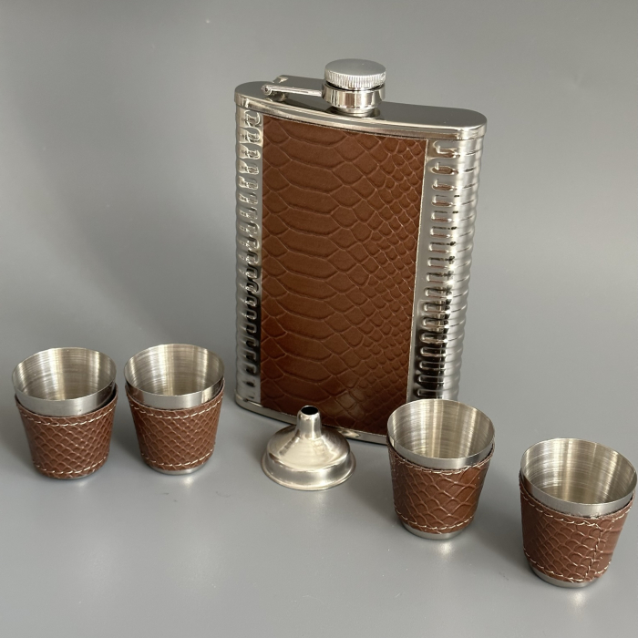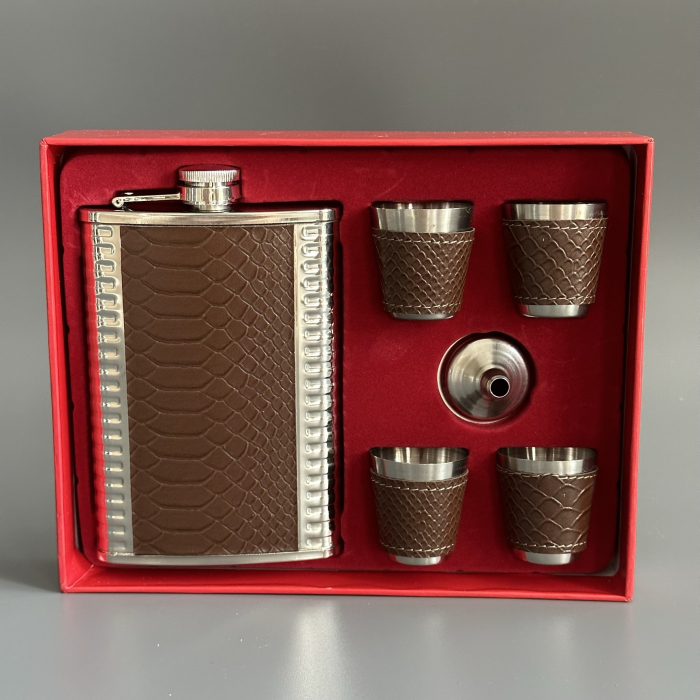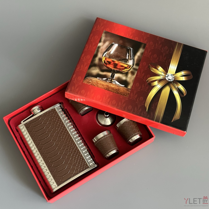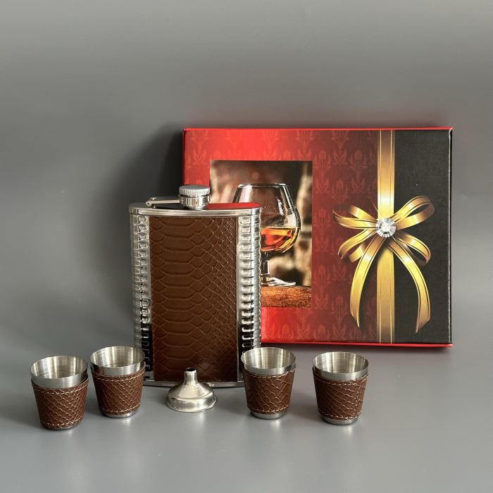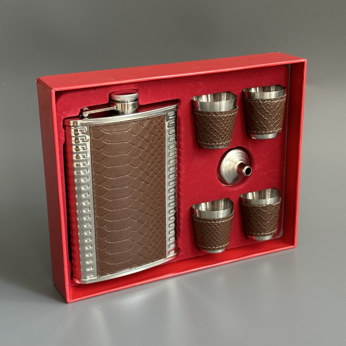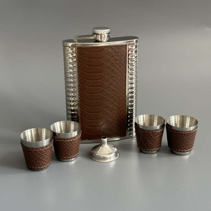 Набор: фляжка, 4 стопки и дозатор Крокодил коричневый
