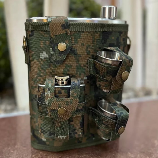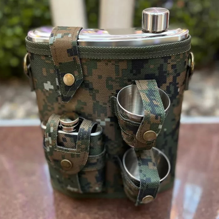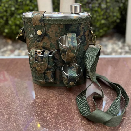 Набор походный Камуфляж. Фляжка 1.4 литра, фляжка 120 мл, 2 стопки, сумка для переноски