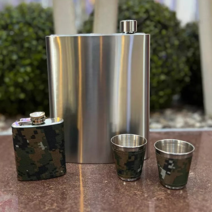 Подарочный набор фляжка с рюмками - это стильный и функциональный комплект, который идеально подойдет как прекрасный подарок для мужчины или женщины, активно отдыхающих на природе, увлекающихся рыбалкой или походами. Набор включает в себя армейскую фляжку, выполненную из качественного материала, что делает ее надежным спутником во время походов и приключений.