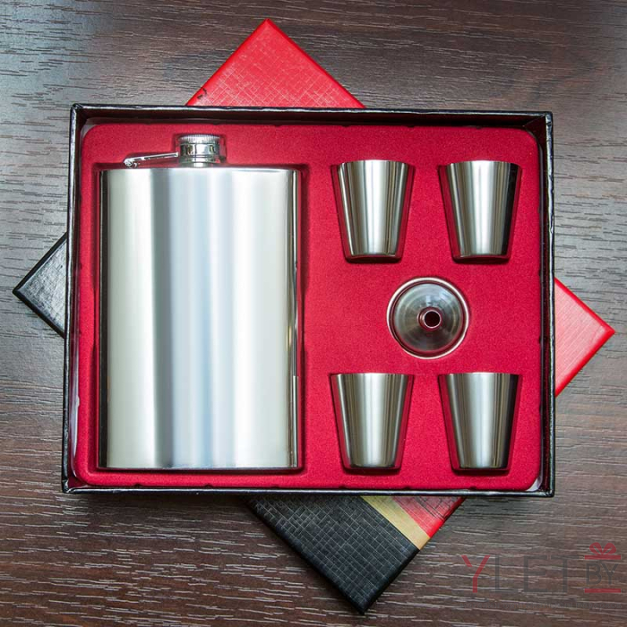 Подарочный набор фляжка со стопками не оставит без внимания ни одного мужчину. Помимо красивого дизайна, набор является практичным подарком. Четыре рюмки, компактная фляжка и воронка для удобного наполнения, пригодятся и особенно приглянутся мужчинам, которые любят охоту, рыбалку или путешествия. Набор не занимает много места и его можно брать с собой в необходимые поездки. Качественные материалы, из которых выполнены все составляющие в наборе, не позволят заржаветь и испортиться.