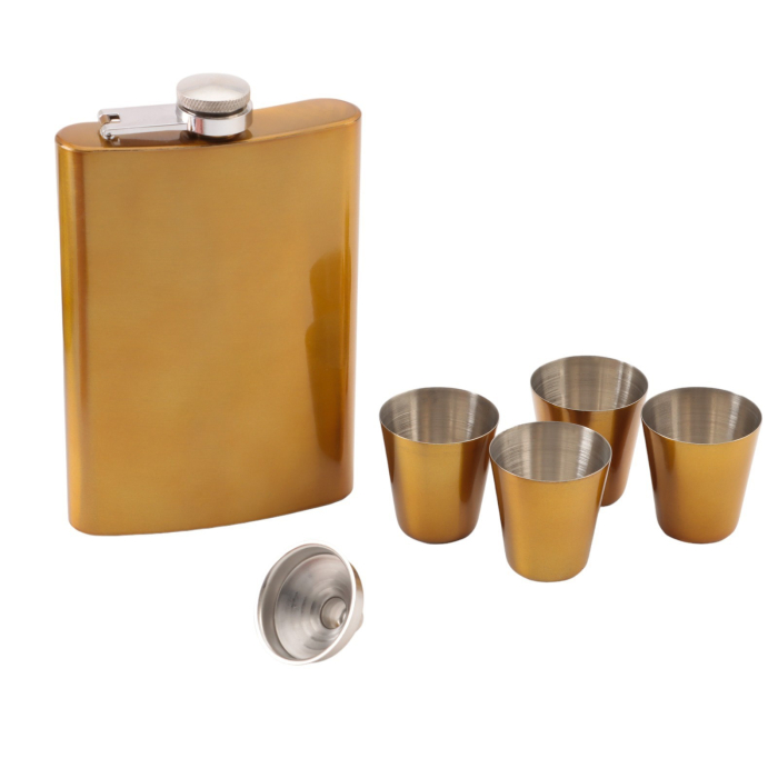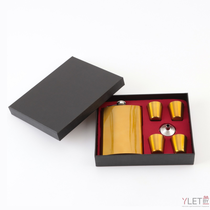 Подарочный набор 6 в 1: фляжка 270 мл, воронка, 4 рюмки, золотой 18 х 24 см