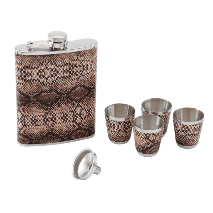 Подарочный набор 6 в 1 "Питон": фляжка 240 мл, воронка, 4 рюмки, коричневый