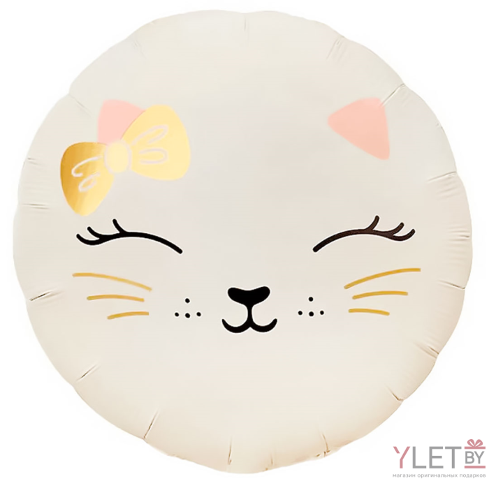 Шар (18''/46 см) Круг, Кошечка с бантом, Кремовый, Сатин