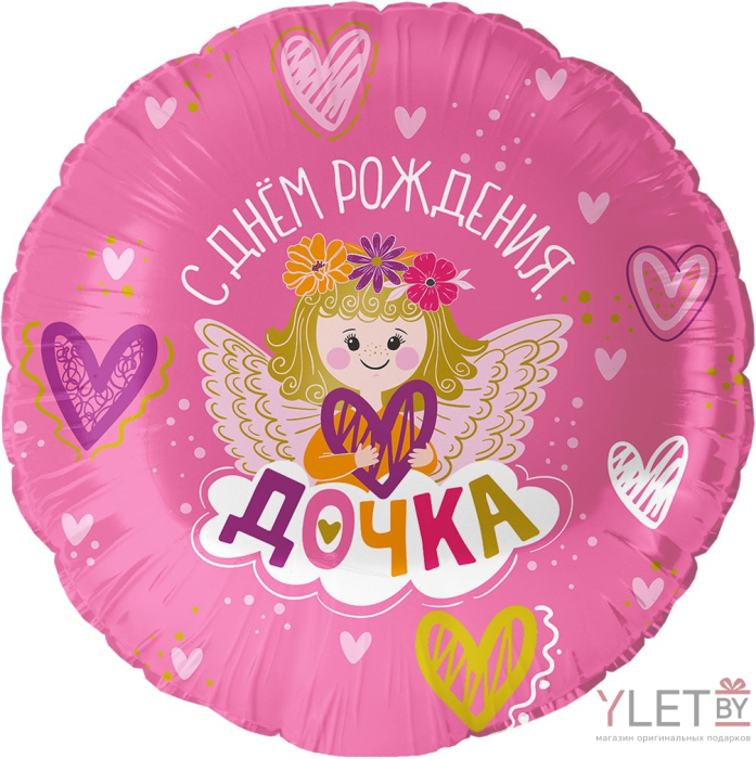 Шар (18''/46 см) Круг, С Днем Рождения, Дочка!, Розовый