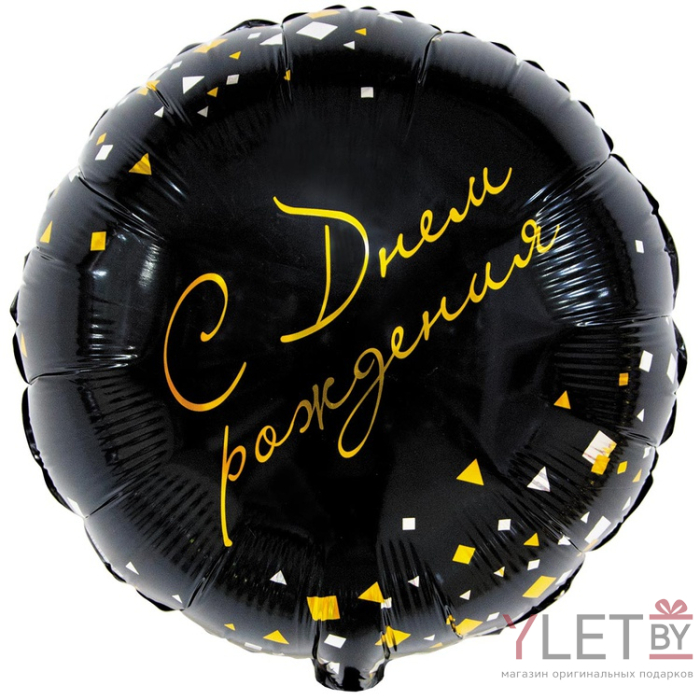 Шар (18''/46 см) Круг, с Днем рождения, конфетти Party черный