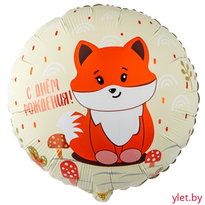 Шар (18"/46 см) Круг, С Днем рождения, Лиса милая