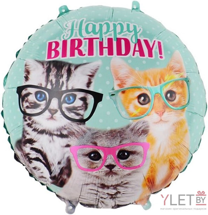 Шар (18''/46 см) Круг, С Днем Рождения, милые котята в очках