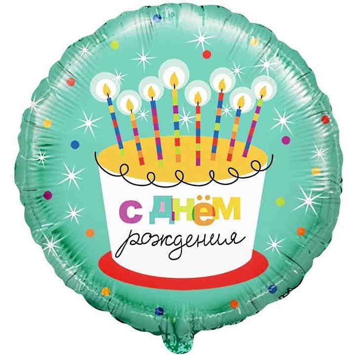 Шар (18"/46 см) Круг, С Днем рождения. Торт со свечками